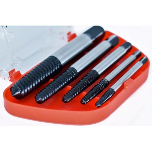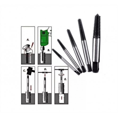 Ideal para remoção de parafusos quebrados, com auxílio de furadeira e broca com menor diâmetro que o parafuso, furar o mesmo depois usar o extrator com rosca no sentido oposto para retirar o parafuso danificado.