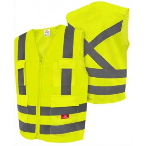 Colete de alta visibilidade para proteção do usuário, em locais onde necessitem de visualização diurna e noturna, deixando-o mais visível, refletindo a luz com cores de alerta.