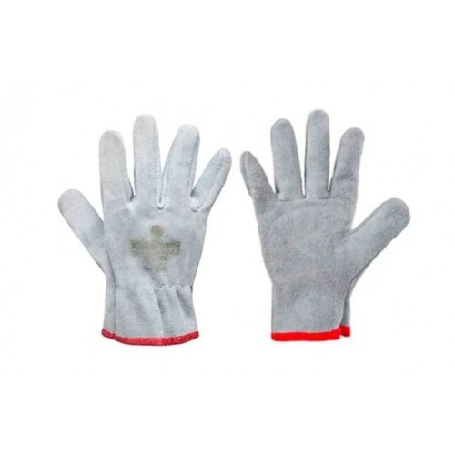 Luva de segurança confeccionada em vaqueta total, reforço interno na palma, tira e reforço entre o ..